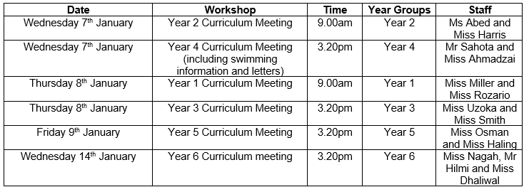 Please see below all of the important curriculum meetings and other workshops we have coming up.